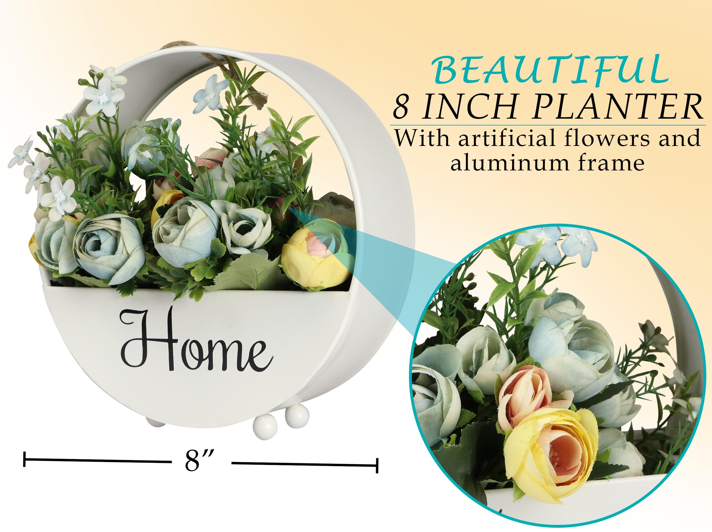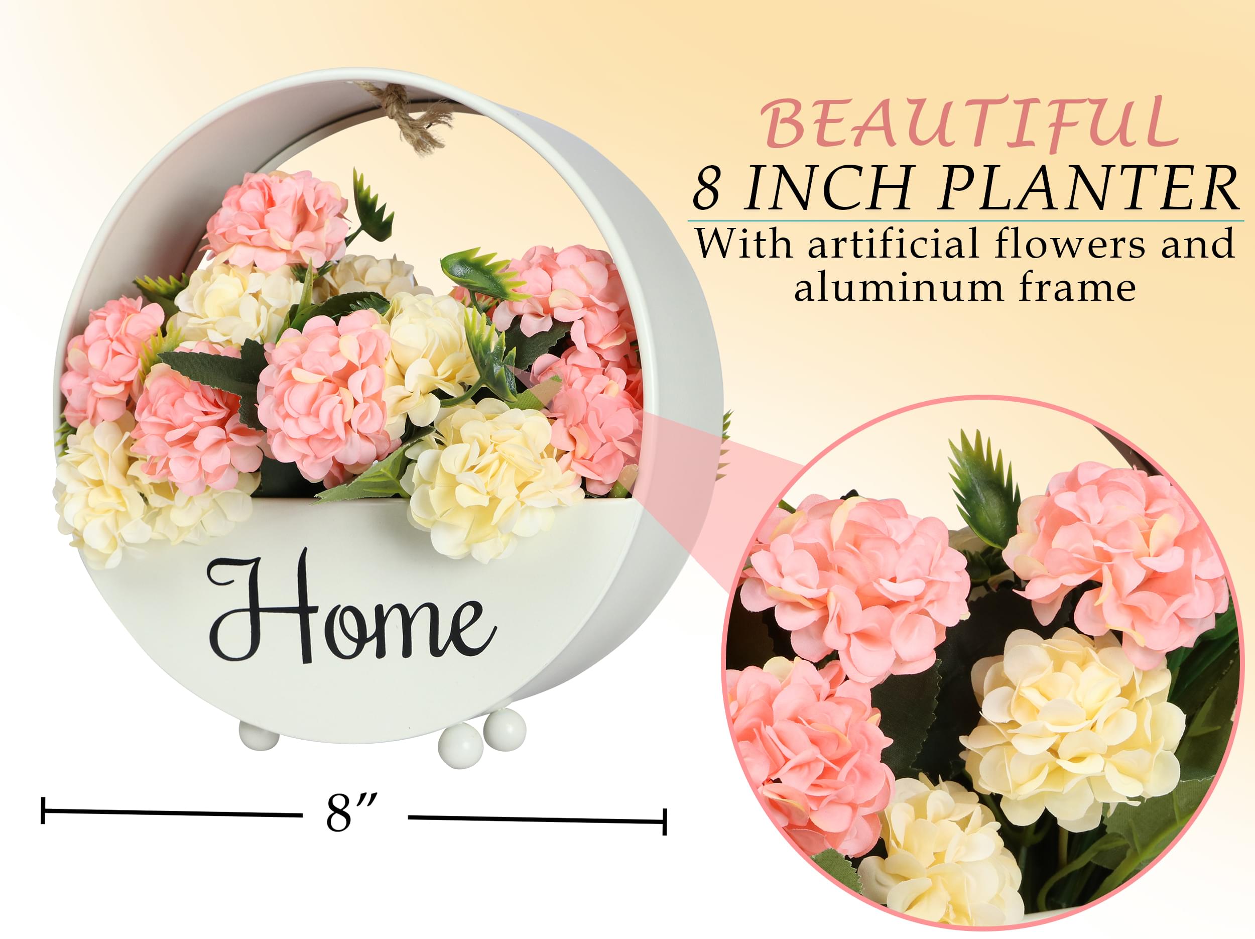 Want a unique piece to add to your home? You have found it with our newly designed metal hanging HOME pot with flowers included! Full design - 20 flowers per pot, can be used as hanging pot, or simply set on a flat surface. Great for indoor or outdoor decoration